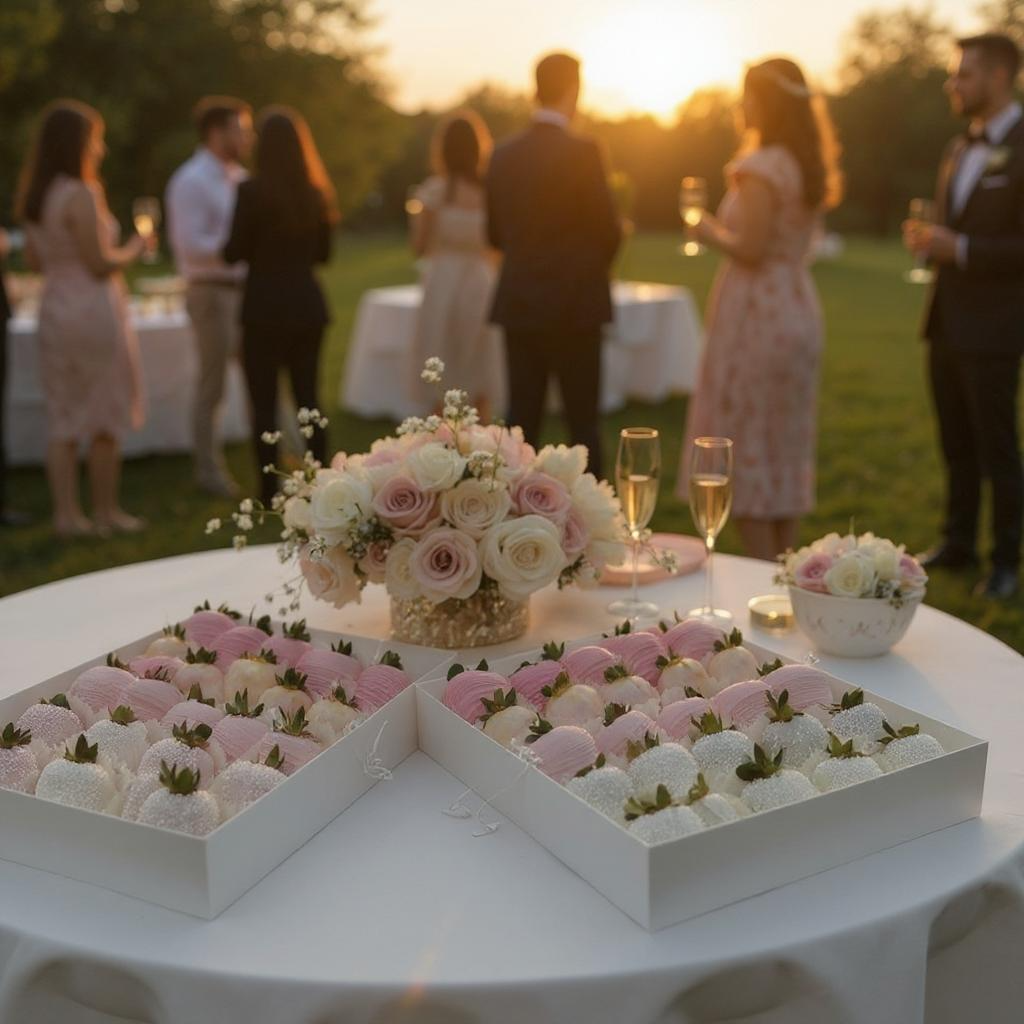 White Chocolate Covered Strawberries, Coloured White Chocolate Covered Strawberries (Pink, Edible Gold Paint, Nonpareils, Candy Pearls)