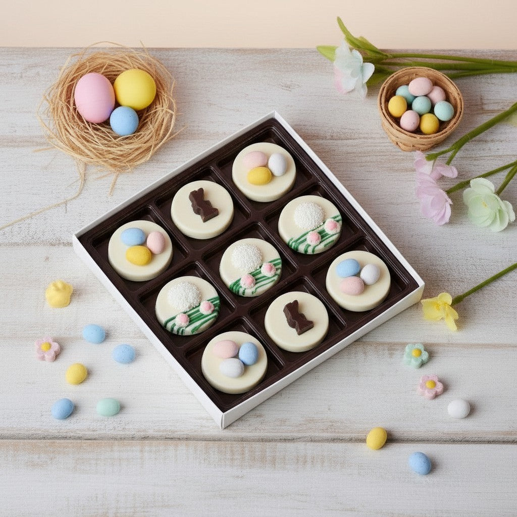 Celebrate Easter with our beautifully decorated chocolate covered Oreos, handcrafted in smooth white Belgian chocolate and finished with elegant seasonal details.