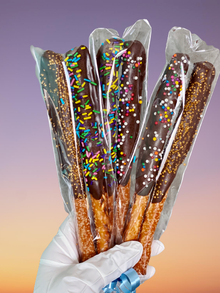 Satisfy both your sweet and salty cravings with our handcrafted chocolate covered sprinkle pretzels. Each pretzel is generously dipped in rich, premium chocolate and topped with colourful sprinkles, making it a delightful treat for all ages. Perfect for birthdays, parties, or as a thoughtful edible gift, these gourmet pretzels are sure to bring a smile.