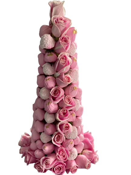 Send this beautiful "Pretty In Pink Strawberry Tower" as a gift to that special someone you want to impress! This tower will be one to remember as it includes a dozen or more fresh cut roses and pink chocolate dipped strawberries. Leave it up to us to have a one of a kind centrepiece hand-delivered right to your loved one with a personalized hand-written card.